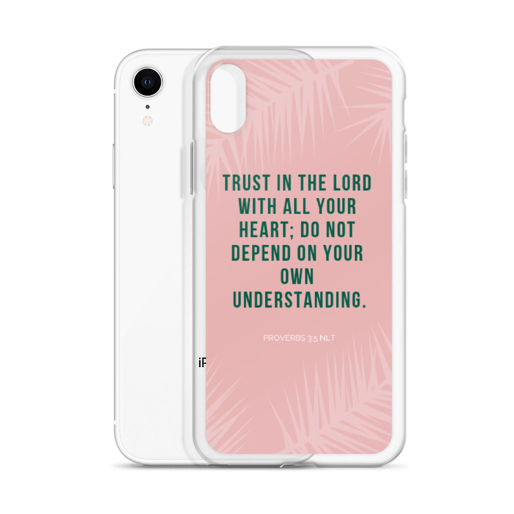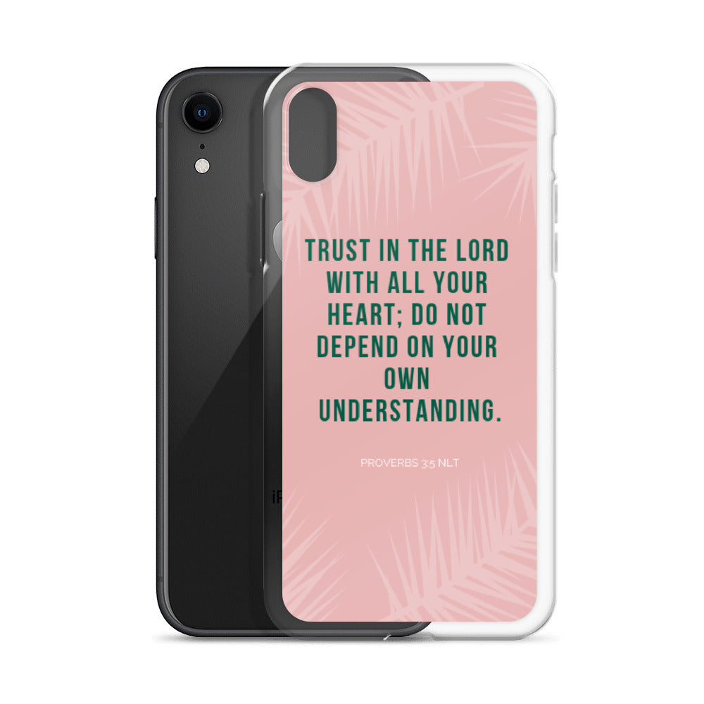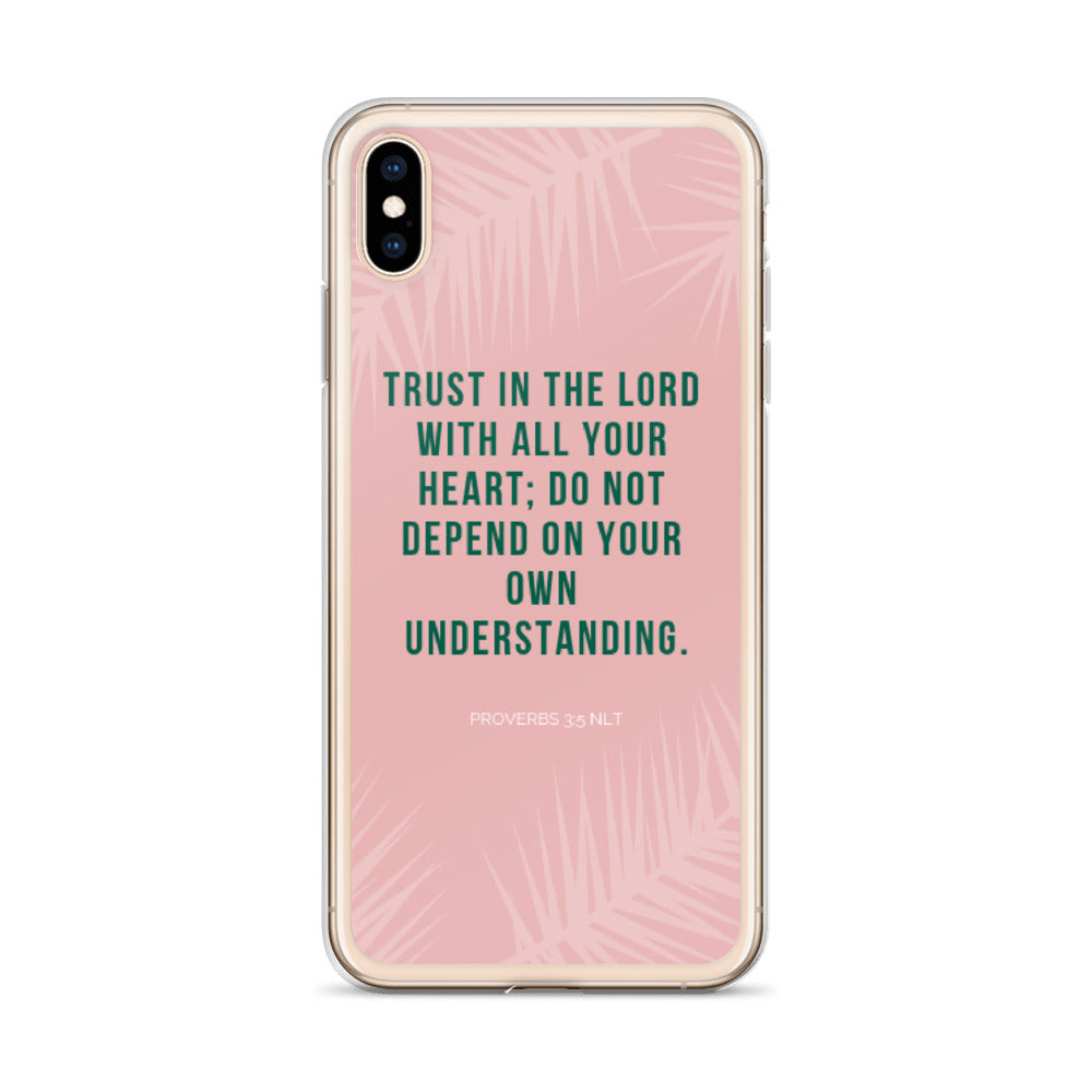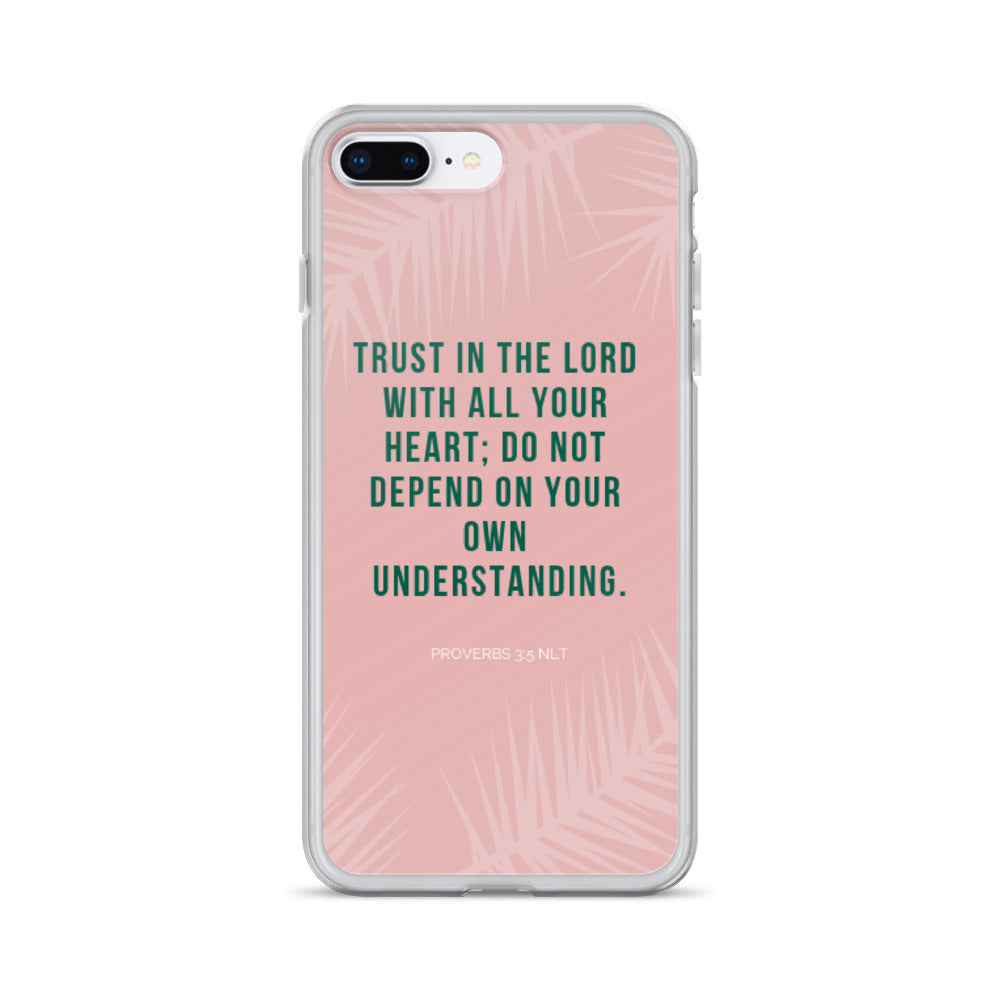 Your favorite bible verse on the go. Can a phone case change your prospective of your current mood? Sometimes we need a daily to reminder of God's promises. This sleek Inspire phone case is designed to uplift your vibes every time you pick up your phone. This case protects your phone from scratches, dust, oil, and dirt. It has a solid back and flexible sides that make it easy to take on and off, with precisely aligned port openings. More Details: Proverbs 3:5 New Living Translation (NLT) Trust in the Lord with all your heart; do not depend on your own understanding. • BPA free Hybrid Thermoplastic Polyurethane (TPU) and Polycarbonate (PC) material • Solid polycarbonate back • Flexible, see-through polyurethane sides • .5 mm raised bezel • Wireless charging compatible